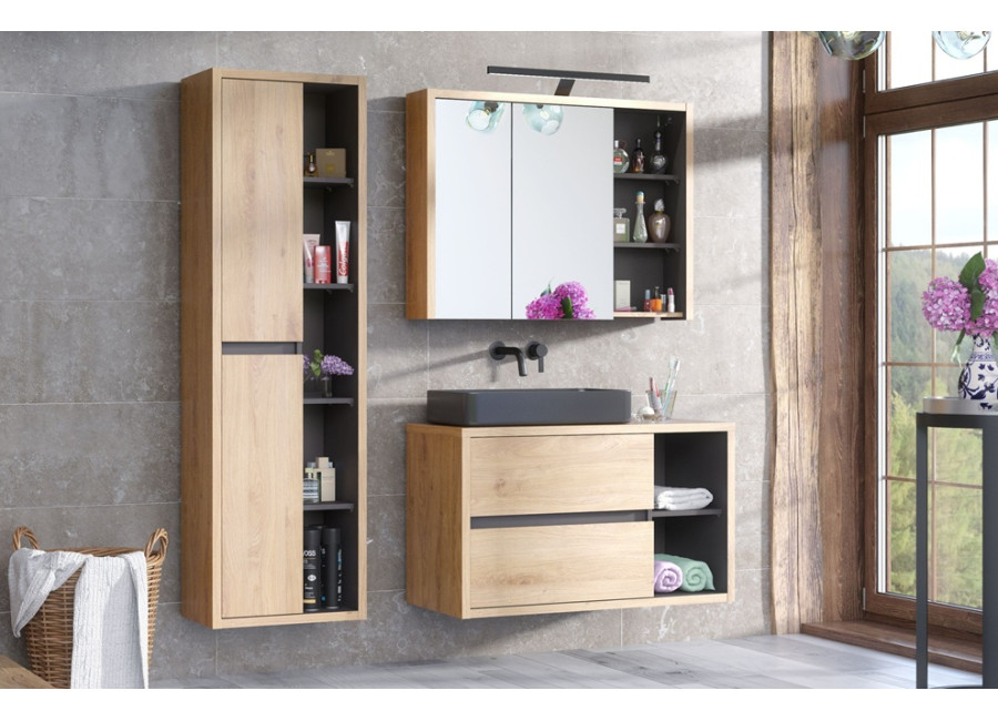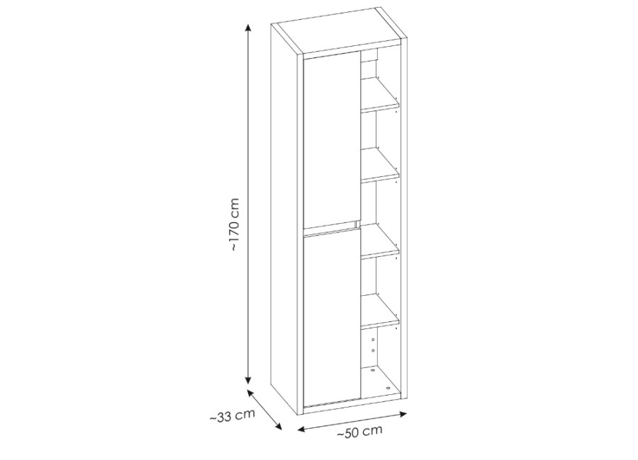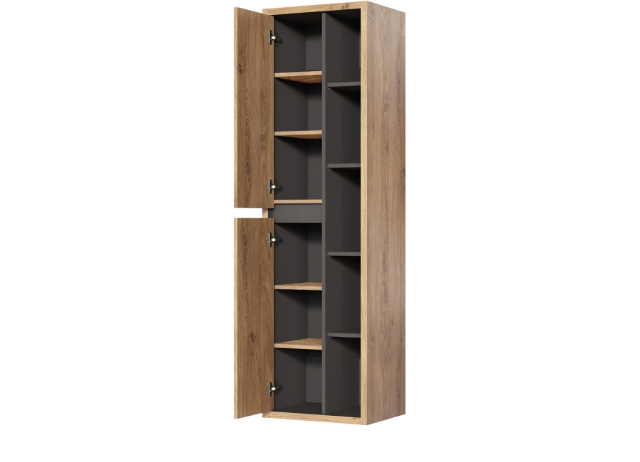 Vysoká skrinka do kúpeľne DEVON 801 so šírkou 50 cm poskytuje dostatočný úložný priestor na uskladnenie všetkých potrebných kúpeľňových potrieb. Vyrobená je z laminovanej drevotriesky s ABS hranami, ktoré zvyšujú jej odolnosť voči vlhkosti. Hladké rovné dvierka a bezúchytkové otváranie prispievajú k čistému a modernému dizajnu, zatiaľ čo farebné prevedenie v kombinácii dub shetland a grafit dodáva kúpeľni jemný a elegantný vzhľad. Závesná konštrukcia na stenu nielen šetrí miesto, ale aj umožňuje jednoduchú údržbu podlahy.