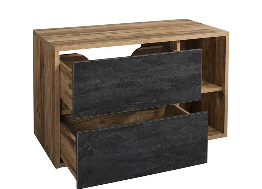 Dve zásuvky vybavené funkciou tichého zatvárania sú praktickým riešením pre uskladnenie rôznych kúpeľňových potrieb. Zákazník môže do skrinky uložiť uteráky, toaletné potreby, čistiace prostriedky alebo kozmetiku. Pre optimálne využitie priestoru pod umývadlom odporúčame ku skrinke zakúpiť plochý sifón.