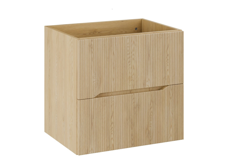 Skrinka pod umývadlo má šírku 60 cm a je závesná na stenu, umožňuje jednoduchú údržbu podlahy a dodáva kúpeľni vzdušnosť. Súčasťou sú dve praktické zásuvky s funkciou tichého zatvárania, ktoré zabezpečujú hladké a tiché používanie. Zafrézované úchytky umocňujú estetický dojem a jednoduchosť otvárania.