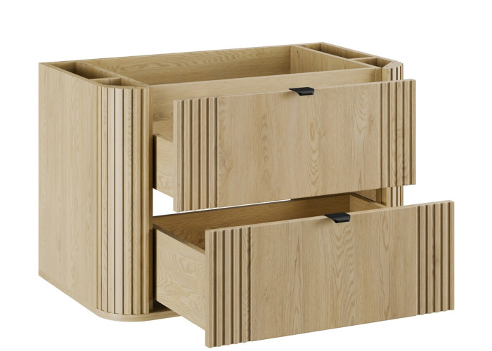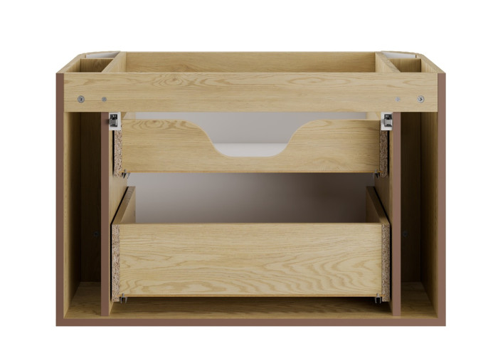Kúpeľňová skrinka je vybavená dvoma zásuvkami s funkciou tichého dovierania. Odporúčame zakúpiť plochý sifón, ktorý vám umožní efektívne využiť hornú zásuvku.