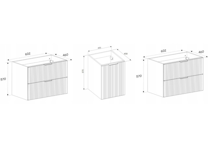 - 2 ks zásuvkovej skrinky pod umývadlo v šírke 60 cm,