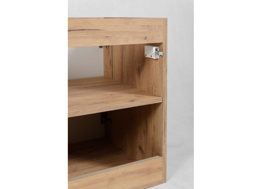 FLOW C80D2 je 80 cm široká skrinka pod umývadlo, ktorá vnesie poriadok do každodenných rituálov. Stavia na čistých líniách a premyslenom členení úložného priestoru, takže prirodzene zapadne medzi kúpeľňové skrinky v moderných aj klasických interiéroch. Myslí na praktickú montáž aj jednoduchú údržbu. Korpus je z laminovanej drevotriesky s ABS hranami, dvierka z MDF. Povrch v odtieni dub craft zlatý dodá kúpeľni teplý, nadčasový charakter.