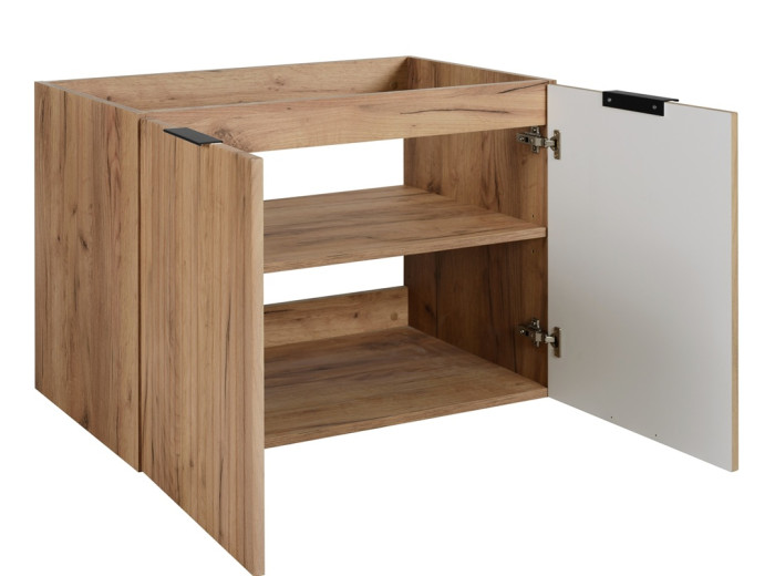 FLOW C80D2 je 80 cm široká skrinka pod umývadlo, ktorá vnesie poriadok do každodenných rituálov. Stavia na čistých líniách a premyslenom členení úložného priestoru, takže prirodzene zapadne medzi kúpeľňové skrinky v moderných aj klasických interiéroch. Myslí na praktickú montáž aj jednoduchú údržbu. Korpus je z laminovanej drevotriesky s ABS hranami, dvierka z MDF. Povrch v odtieni dub craft zlatý dodá kúpeľni teplý, nadčasový charakter.