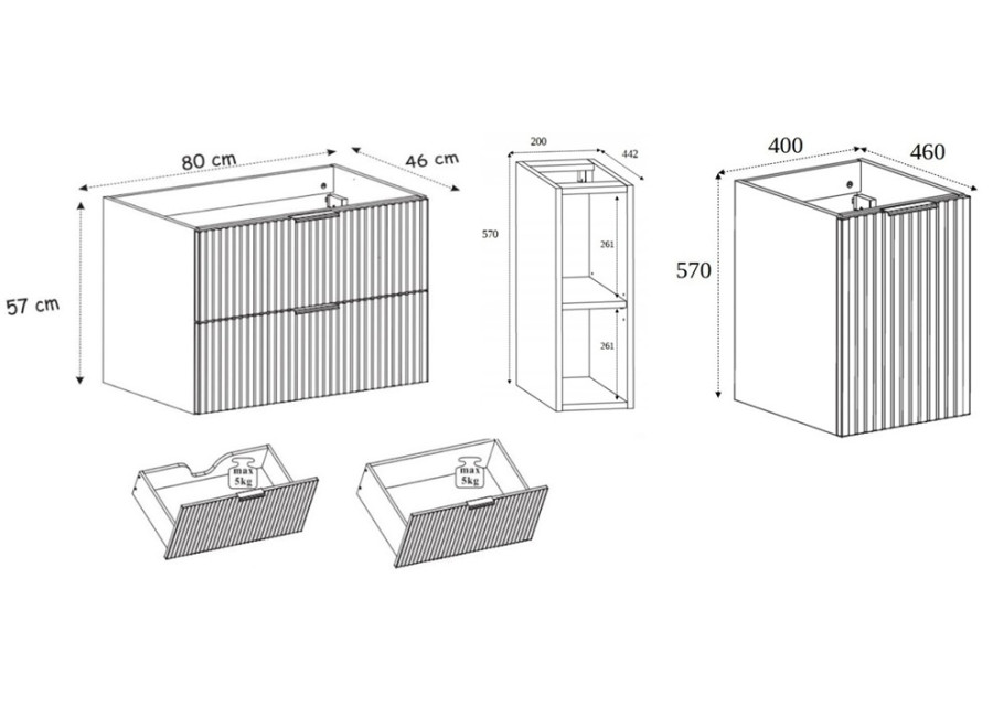 - 80 cm zásuvkovej skrinky pod umývadlo,