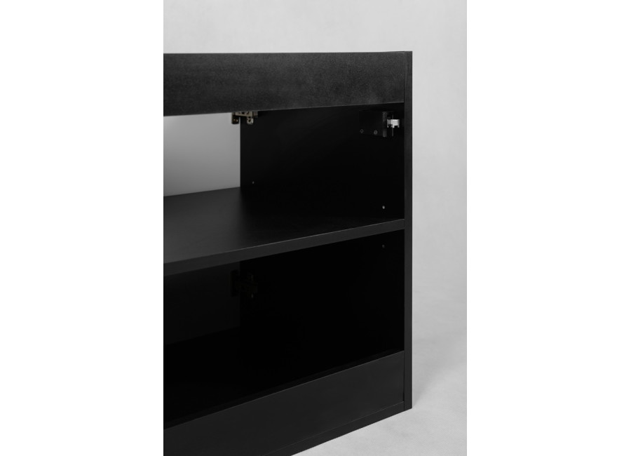 Skrinka pod umývadlo FLOW čierny matný B180-80-20-80-DC je kúpeľňový nábytok určený do väčších kúpeľní. Skrinka pod umývadlo v šírke 180 cm, skladá sa zo štyroch častí: