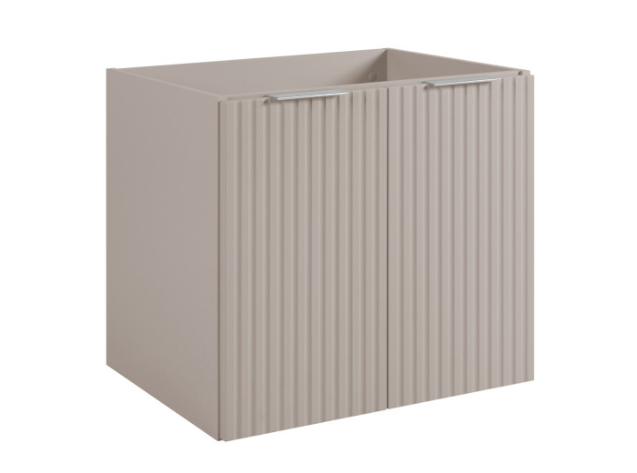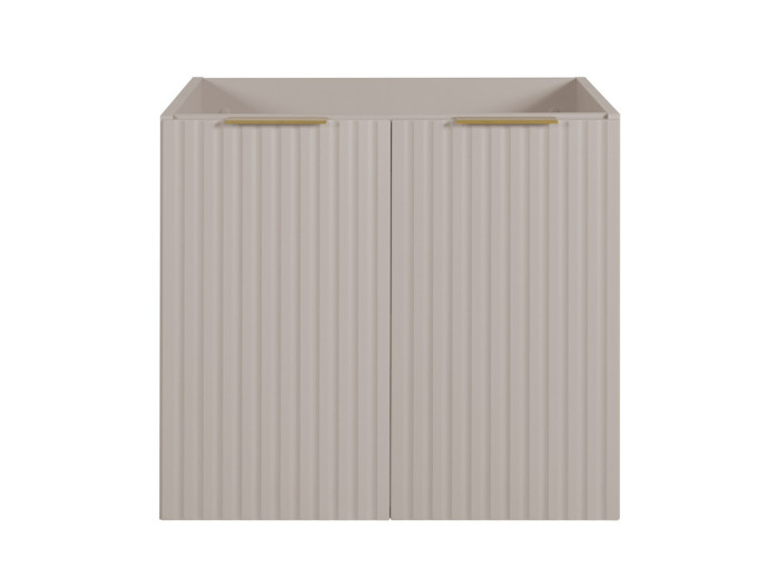 Skrinka pod umývadlo FLOW kašmír K60D2 patrí medzi béžové kúpeľňové skrinky, ktoré dokážu skĺbiť funkčnosť s elegantnými modernými líniami. Táto skrinka pod umývadlo v šírke 60 cm je vyrobená z laminovanej drevotriesky s ABS hranami, pričom predné plochy z MDF materiálu sú zdobené zvislým drážkovaním, čo celému nábytku dodáva moderný akcent. Farebné prevedenie kašmír zapadne do väčšiny kúpeľňových interiérov, kde sa hľadá béžový kúpeľňový nábytok s nadčasovým vzhľadom. Skrinka je závesná na stenu, čo uľahčuje údržbu podlahy a opticky odľahčuje priestor. Dvierka sú vybavené funkciou tichého zatvárania.