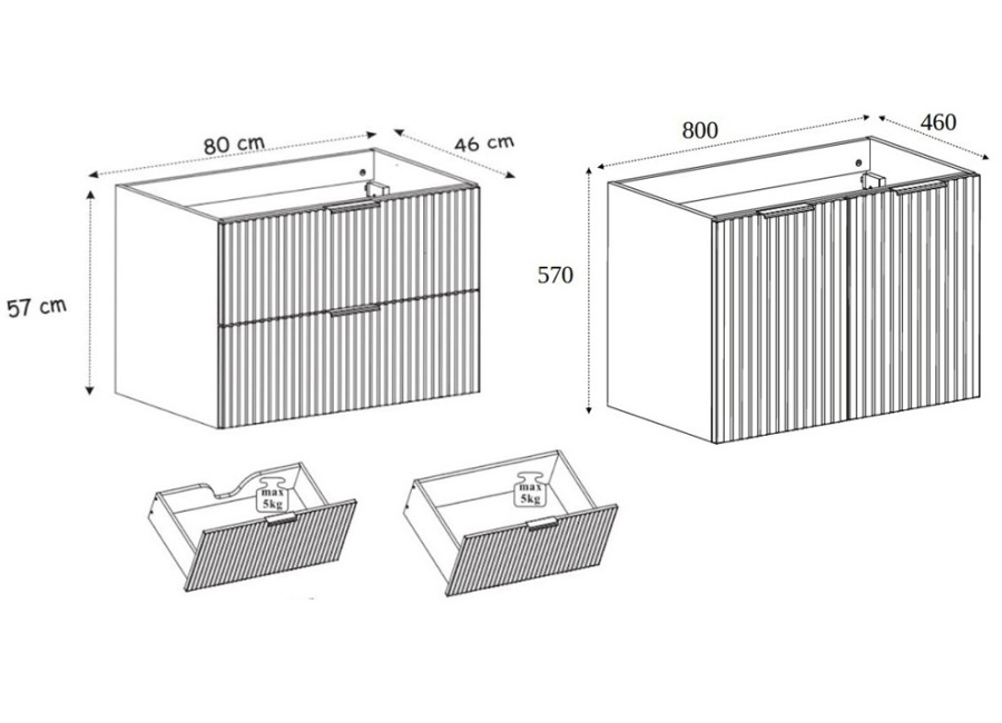 - 80 cm zásuvkovej skrinky pod umývadlo,