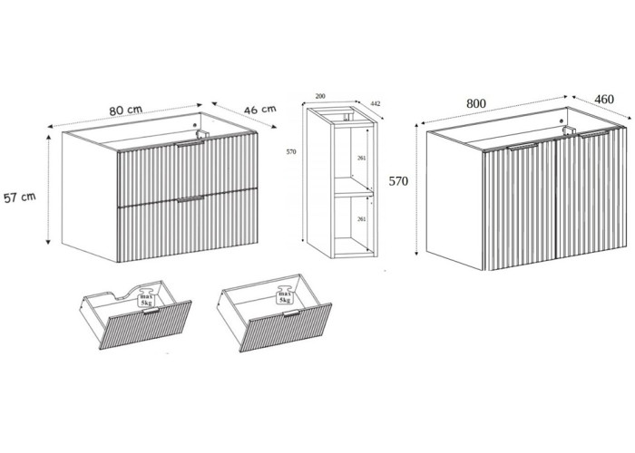 - 80 cm zásuvkovej skrinky pod umývadlo,