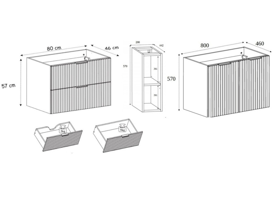 - 80 cm zásuvkovej skrinky pod umývadlo,