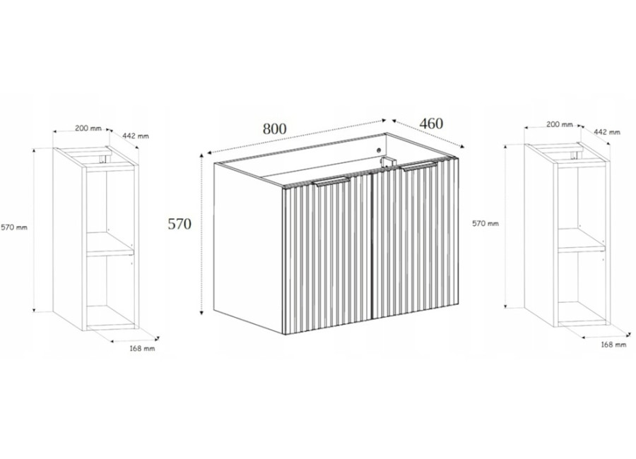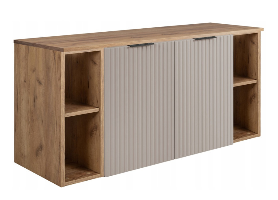 Kúpeľňová skrinka je vyrobená z laminovanej drevotriesky s ABS hranami, čelné plochy dvierok sú zhotovené z MDF materiálu. Kašmírové farebné prevedenie nádherne doplní béžové kúpeľňové priestory a dodá im nádych luxusu. Moderné drážkované čelá dvierok pridávajú skrinke osobitý charakter a originálny vzhľad. Skrinka je navrhnutá na upevnenie na stenu, čo nielen uvoľní podlahový priestor a vytvorí vzdušný dojem, ale tiež zjednodušuje upratovanie. V balení nájdete tri sady úchytiek – čierne, zlaté a chrómové – ktoré Vám umožnia prispôsobiť skrinku Vášmu interiéru.