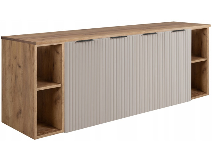 Skrinka pod umývadlo FLOW kašmír K160R6060RDC-2 v kašmírovo-dubovom farebnom prevedení je praktickým a dizajnovo atraktívnym riešením pre moderné kúpeľne. Skrinka má šírku 160 cm a je zložená z piatich častí: