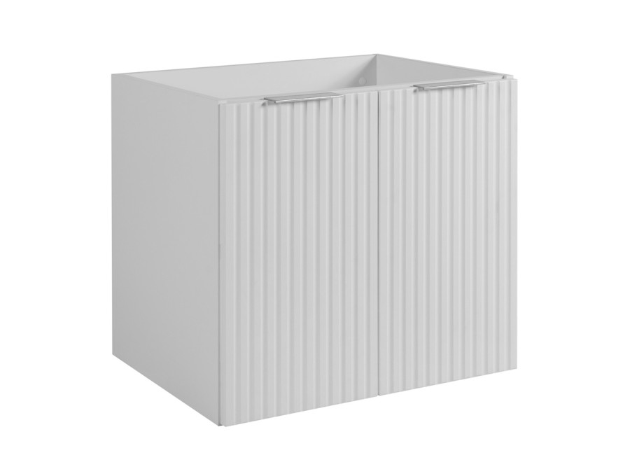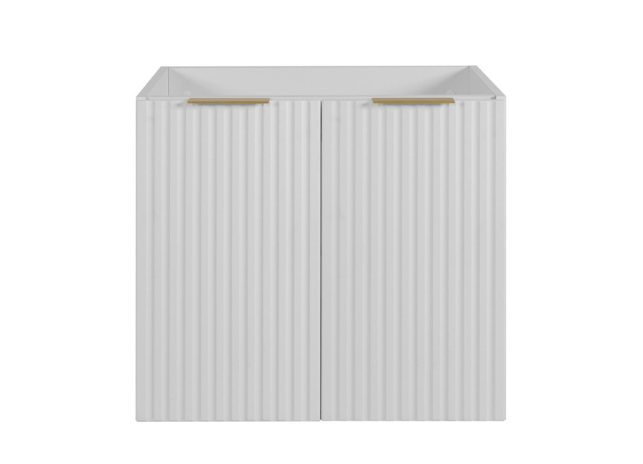 Skrinka pod umývadlo FLOW biely matný W60D2 je praktickým riešením pre moderné kúpeľne, kde sa kladie dôraz na funkčnosť a čistý dizajn. Skrinka pod umývadlo v šírke 60 cm je vyrobená z laminovanej drevotriesky s ABS hranami, čo zaručuje jej trvácnosť a odolnosť voči vlhkosti. Predné plochy z MDF materiálu sú zdobené zvislým drážkovaním, ktoré vytvára elegantný vzhľad a zároveň nadväzuje na aktuálne trendy v oblasti nábytku do kúpeľne. Farebné prevedenie biela matná pôsobí čisto a ľahko sa kombinuje s ostatnými prvkami kúpeľňového zariadenia.