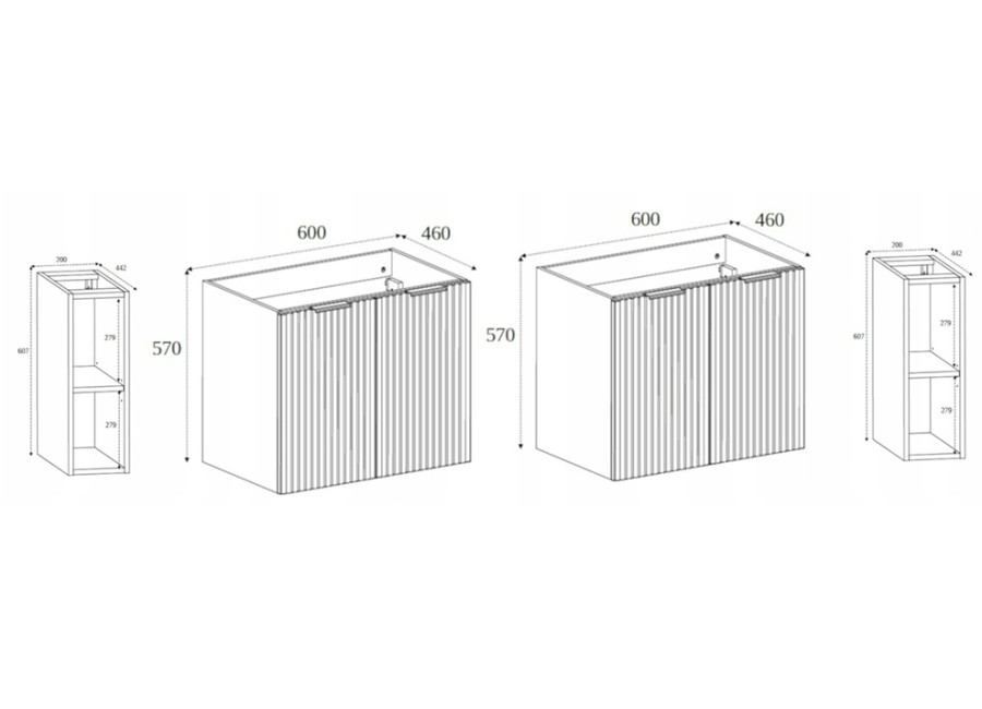 - 60 cm policovej skrinky pod umývadlo v počte 2 ks,