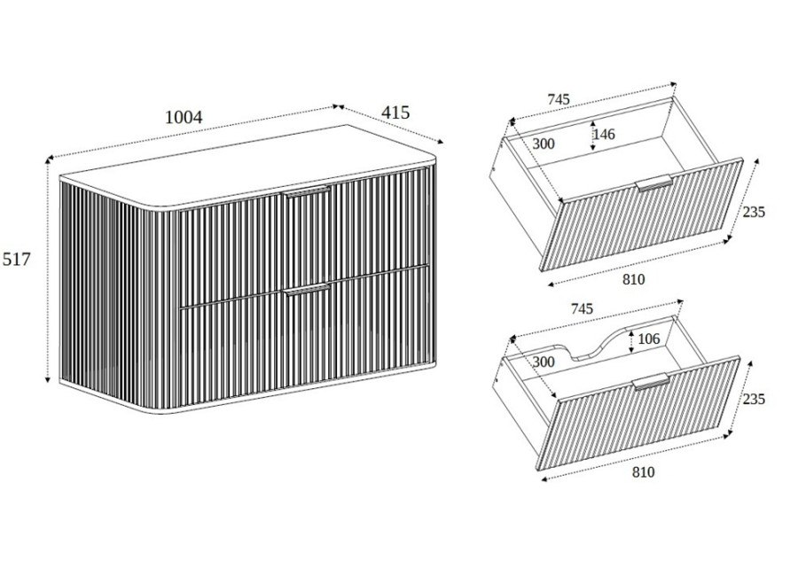 - ozdobne drážkované predné plochy a bočnice skrinky,