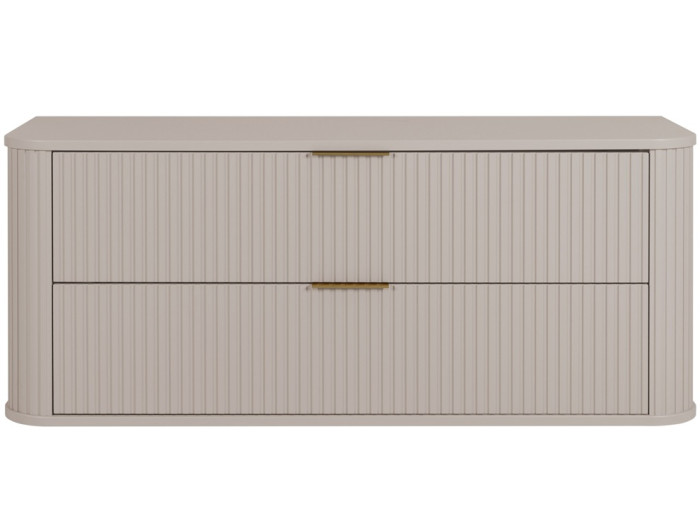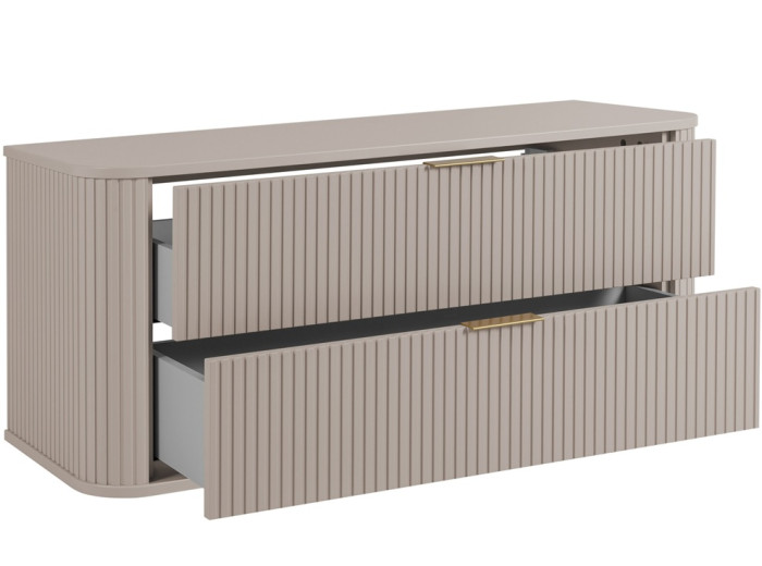 Skrinka pod umývadlo ELEGANCE kašmír K120 je ideálnym príkladom moderného kúpeľňového nábytku, ktorý kombinuje funkčnosť s estetikou. So šírkou 120 cm sa tento model dokonale hodí do každého priestoru. Vyrobená je z laminovanej drevotriesky s ABS hranami, jej predné plochy a bočnice z MDF materiálu sú zdobené zvislým drážkovaním, čo pridáva štýlový vzhľad všetkým kúpeľňovým skrinkám. Farebné prevedenie kašmír prináša do kúpeľne jemný a teplý nádych, ktorý ľahko zladíte s ostatným kúpeľňovým nábytkom.
