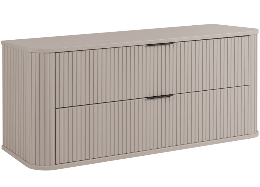 Skrinka pod umývadlo ELEGANCE kašmír K120 je ideálnym príkladom moderného kúpeľňového nábytku, ktorý kombinuje funkčnosť s estetikou. So šírkou 120 cm sa tento model dokonale hodí do každého priestoru. Vyrobená je z laminovanej drevotriesky s ABS hranami, jej predné plochy a bočnice z MDF materiálu sú zdobené zvislým drážkovaním, čo pridáva štýlový vzhľad všetkým kúpeľňovým skrinkám. Farebné prevedenie kašmír prináša do kúpeľne jemný a teplý nádych, ktorý ľahko zladíte s ostatným kúpeľňovým nábytkom.