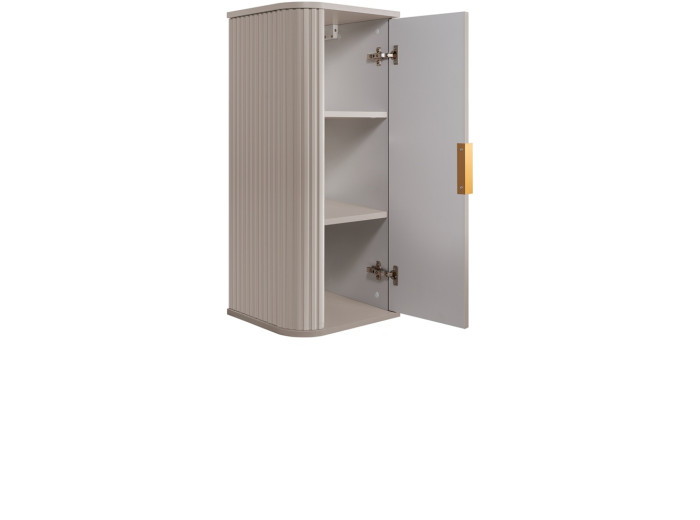 Túžite po dokonalej kúpeľňovej skrinke, ktorá kombinuje nadčasovú eleganciu s praktickosťou? Predstavujeme Vám závesnú skrinku do kúpelne ELEGANCE K35 v béžovom odtieni kašmír, ktorá Vám môže rozšíriť úložný priestor napr. vedľa zrkadla. 16 mm laminovaná drevotrieska v kombinácii s MDF materiálom zaručuje nielen trvácnosť, ale aj luxusný vzhľad. Jedinečné zaoblené línie a elegantné vertikálne drážky na korpuse i dvierkach vytvárajú podmanivú hru svetla a tieňa.