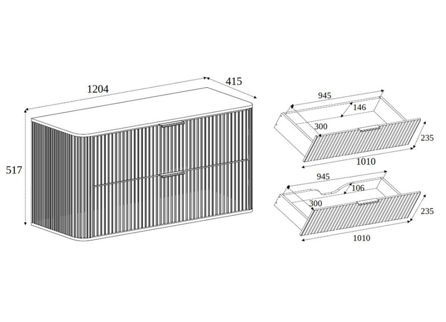 - ozdobne drážkované predné plochy a bočnice skrinky,