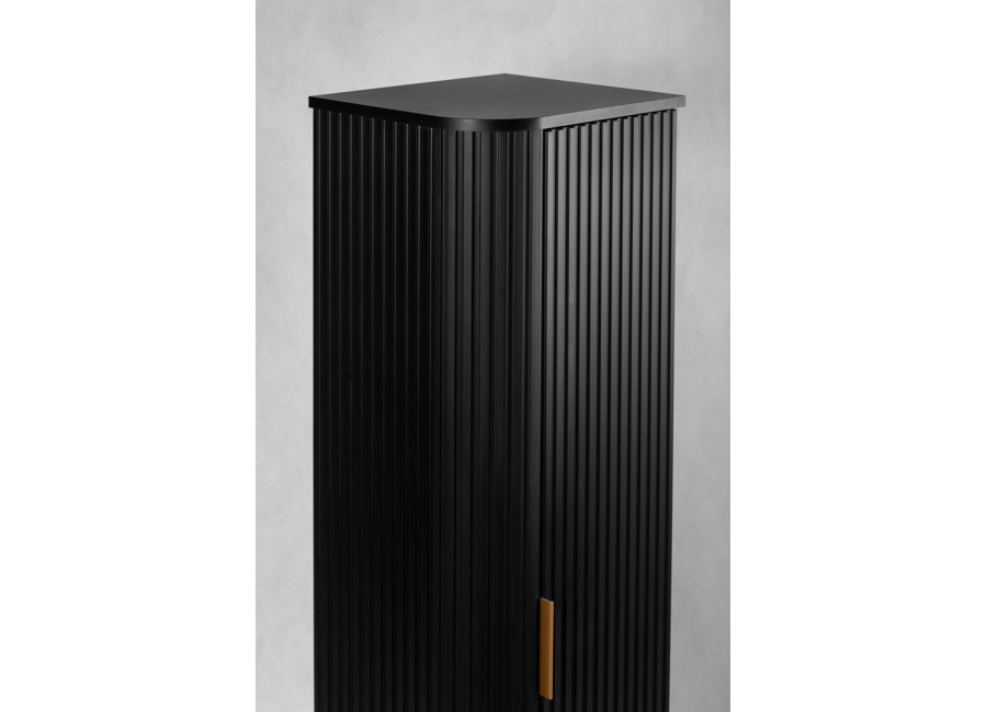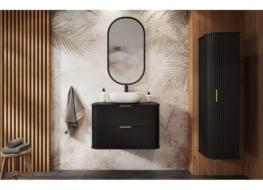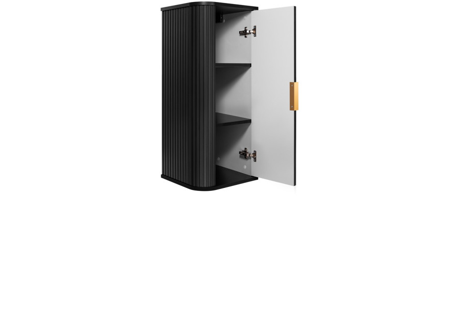 Hľadáte dokonalý čierny nábytok do kúpeľne, ktorý Vás očarí svojím elegantným dizajnom a praktickými vlastnosťami? Predstavujeme Vám závesnú skrinku do kúpeľne ELEGANCE čierna B35M, ktorá splní Váš sen o tmavej kúpeľni a dokonale rozšíri úložný priestor napr. vedľa zrkadla. Skrinka je vyrobená z kvalitnej laminovanej drevotriesky a MDF materiálu s hrúbkou 16 mm. Zaujímavým dizajnovým prvkom sú zaoblené tvary a zvislé drážky na korpuse aj dvierkach, ktoré dodávajú skrinke moderný a elegantný vzhľad. Môžete si vybrať, či ju zmontujete ako ľavé alebo pravé prevedenie, čím dokonale zapadne do akéhokoľvek priestoru. Dvierka skrinky sú vybavené moderným tichým zatváraním, takže manipulácia so skrinkou je príjemná a bez zbytočného hluku. V balení navyše nájdete dve úchytky – v čiernej a zlatej farbe, ktoré si pri montáži zvolíte podľa svojej preferencie.