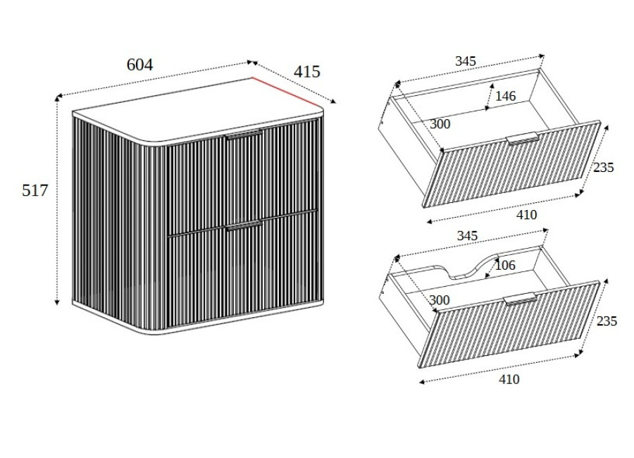 - ozdobne drážkované predné plochy a bočnice skrinky,