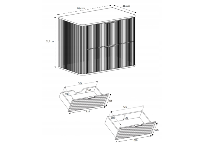 - ozdobne drážkované predné plochy a bočnice skrinky,