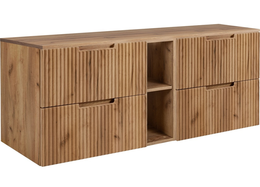 Skrinka pod umývadlo VENA C140DC v prevedení dub craft zlatý je praktickým riešením pre priestranné kúpeľne, kde je potrebné spojiť dostatok úložného priestoru a príjemný dizajn. Ide o skrinku do kúpeľne v šírke 140 cm, ktorá sa skladá zo štyroch častí: