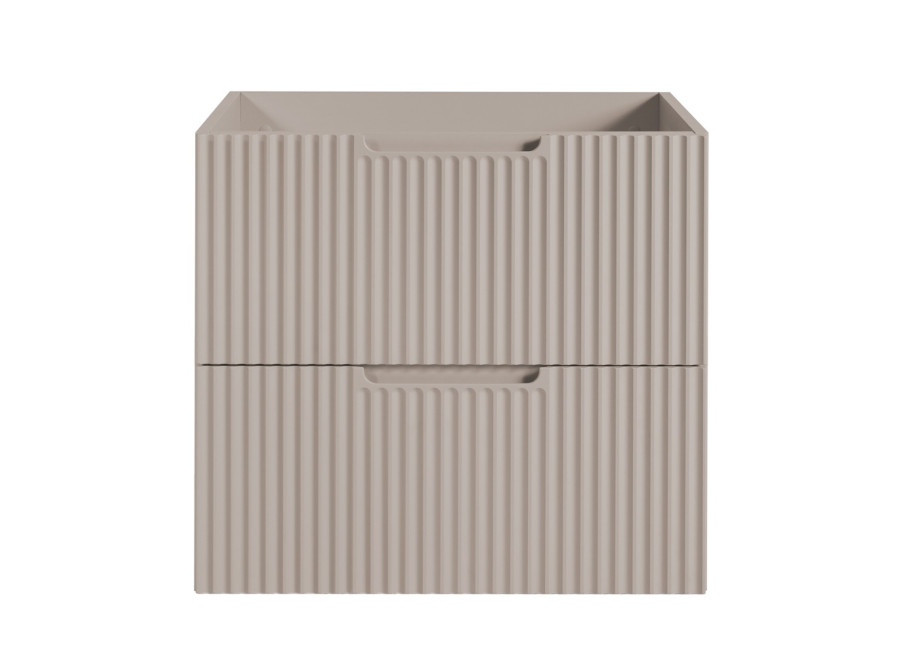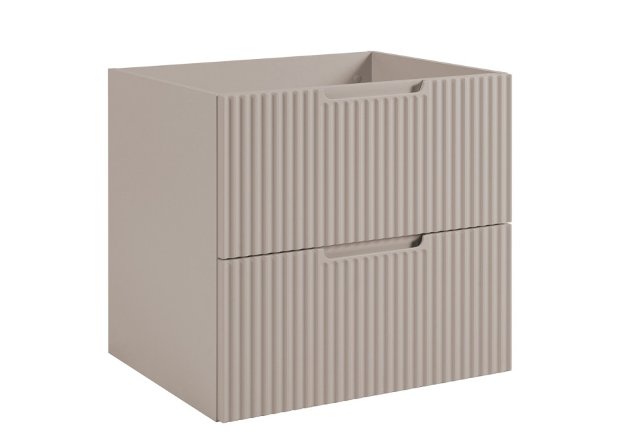 Skrinka pod umývadlo v šírke 60 cm je súčasťou kolekcie VENA, ktorá obsahuje kúpeľňové skrinky, vysoké skrinky aj závesné skrinky do kúpeľne. Nábytok do kúpeľne je vyrobený z laminovanej drevotriesky s ABS hranami, pričom predné plochy z MDF materiálu sú zdobené zvislým drážkovaním. Vďaka farebnému prevedeniu kašmír, vnútorným častiam zásuviek v svetlosivej farbe a zafrézovaným úchytkám prináša do priestoru jemný nádych nadčasového dizajnu. Skrinka je závesná na stenu a zásuvky sú vybavené funkciou tichého dovierania, čo prispieva k vyššiemu komfortu pri každodennom používaní.
