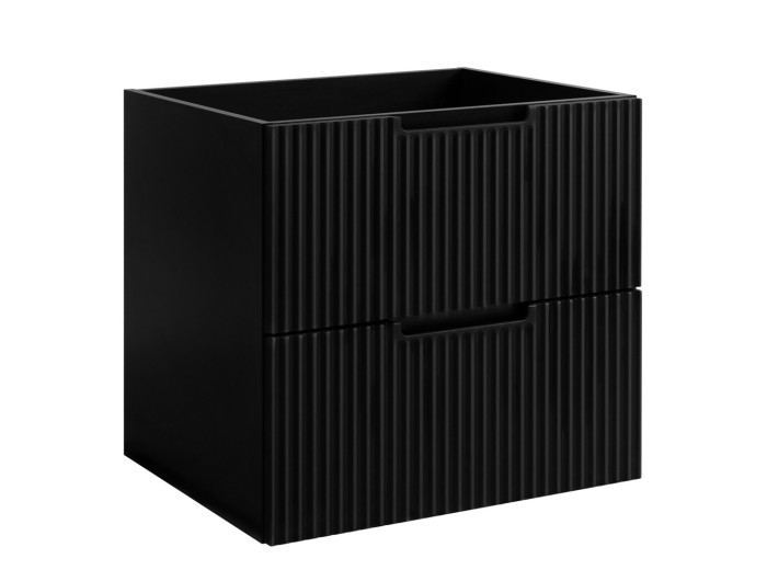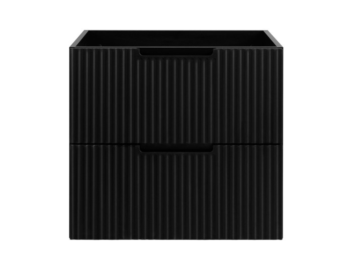 Skrinka pod umývadlo v šírke 60 cm z kolekcie VENA je súčasťou moderného a funkčne navrhnutého kúpeľňového vybavenia. Tento nábytok do kúpeľne je vyrobený z laminovanej drevotriesky s ABS hranami, čím si zachováva dobrú odolnosť voči vlhkosti. Predné plochy sú z MDF materiálu, zdobené jemným zvislým drážkovaním. Kúpeľňová skrinka je vyrobná v čiernej matnej, vnútorný priestor zásuviek je v svetlosivej farbe. Je závesná na stenu, čím zabezpečuje jednoduché udržiavanie čistoty v kúpeľni a zároveň pôsobí kompaktne.