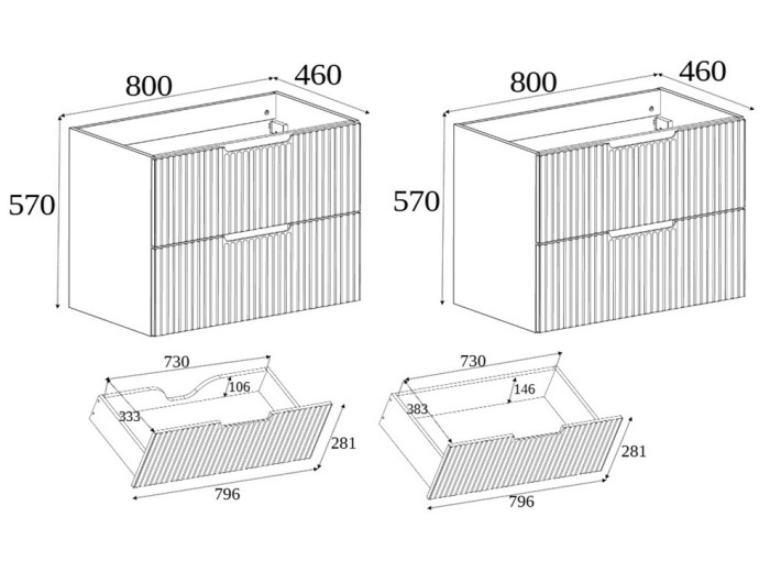 Dizajn podčiarkujú minimalistické zafrézované úchytky a fakt, že skrinka je závesná na stenu, čo prispieva k optickému odľahčeniu a uľahčuje upratovanie podlahy. Zásuvky vybavené funkciou tichého dovierania garantujú pohodlnú manipuláciu. Ku skrinke odporúčame zakúpiť plochý sifón, ktorý Vám umožní využiť hornú zásuvku na maximum. Oba moduly s dvomi zásuvkami poskytujú dostatočný priestor na uskladnenie veľkého počtu uterákov, čistiacich prostriedkov, sušičov na vlasy alebo všetkej kozmetiky pre dvoch a viac osôb.