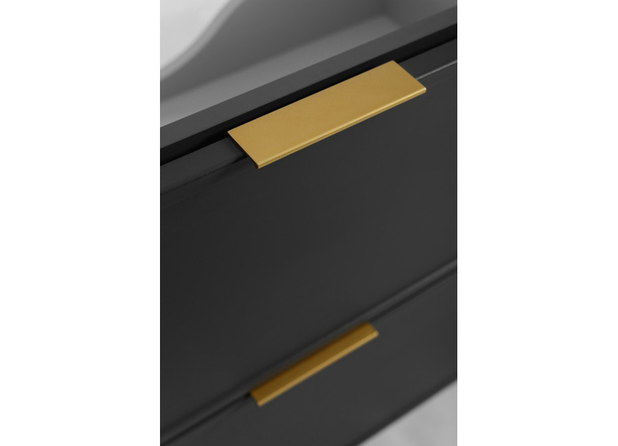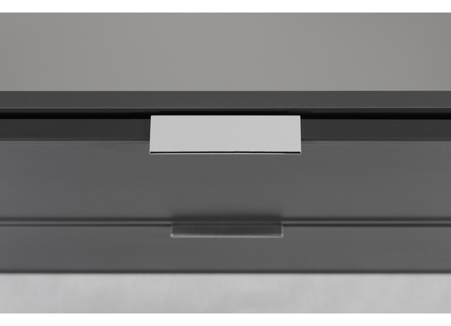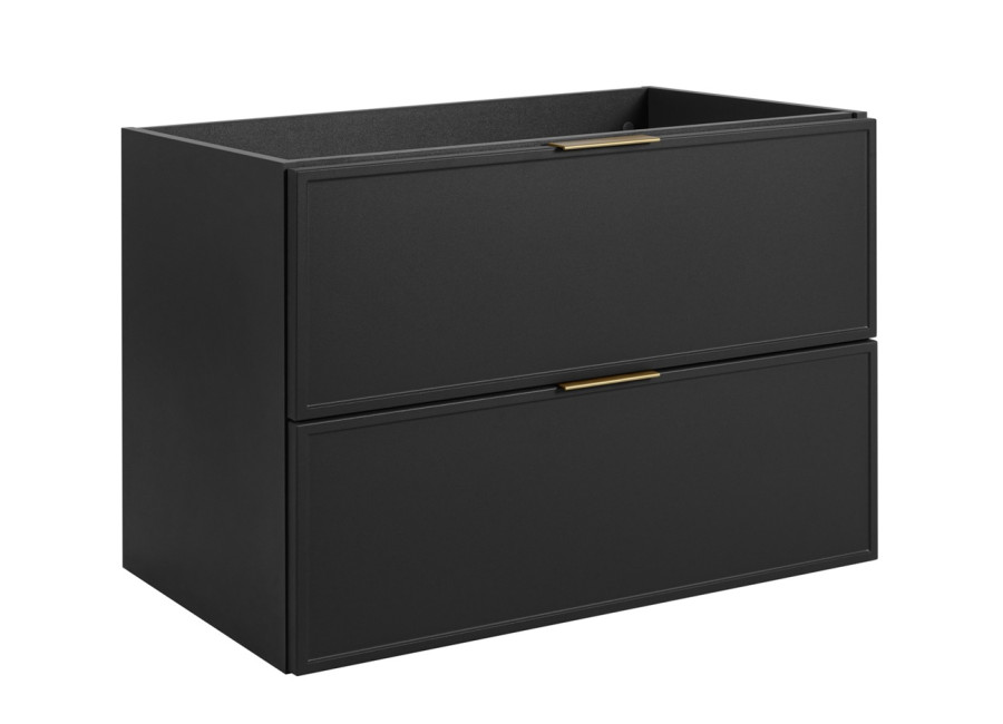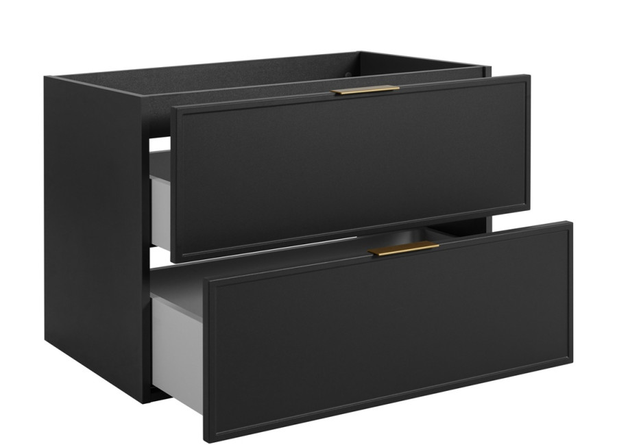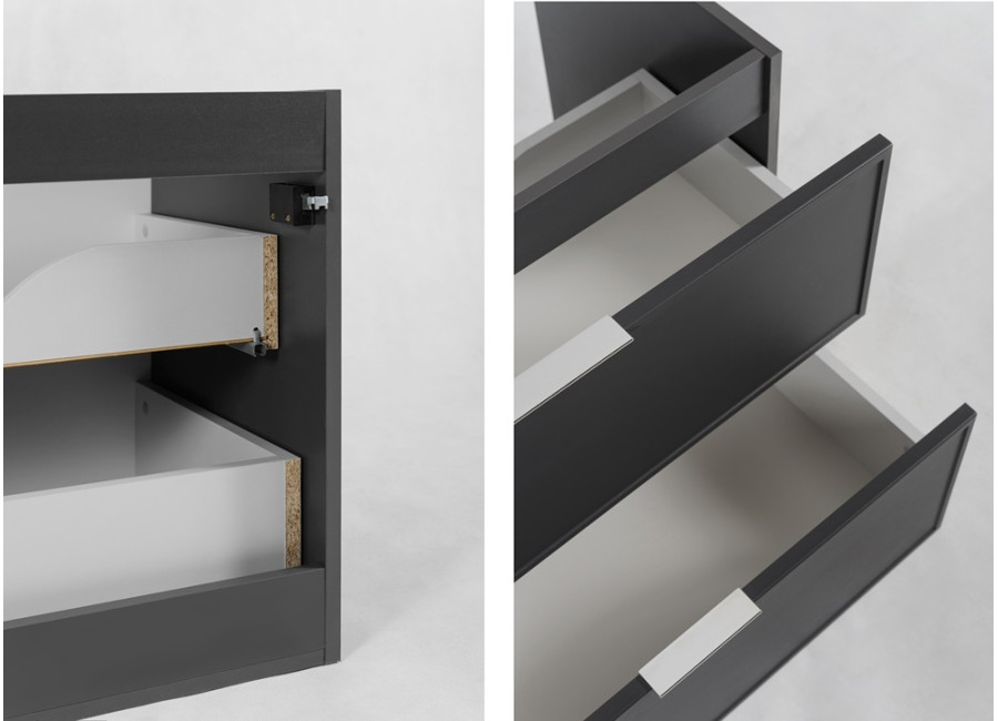 Skrinka pod umývadlo SLIM v elegantnom tmavosivom prevedení so šírkou 80 cm predstavuje ideálnu voľbu pre moderné kúpeľňové priestory. Skrinka do kúpeľne je vyrobená z laminovanej drevotriesky s ABS hranami, ktoré zvyšujú jej odolnosť voči vlhkosti. Predné plochy skrinky sú z MDF materiálu, ktorý je jemne zdobený úzkym rámčekom, čím dodáva celkový vzhľad luxusu a sofistikovanosti. Súčasťou balenia sú tri farebné sady úchytiek: čierna, zlatá a strieborná, ktoré umožňujú zladiť skrinku s ostatnými doplnkami v kúpeľni, ako sú napríklad batérie. Vnútorné časti zásuviek majú svetlosivú farbu a sú vybavené funkciou tichého dovierania, ktorá prispieva k zvýšeniu komfortu pri každodennom používaní.