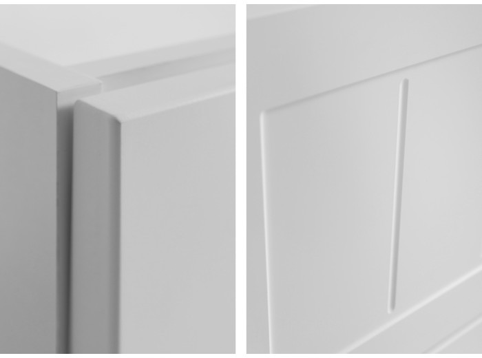 - ozdobne drážkované čelá zásuviek,