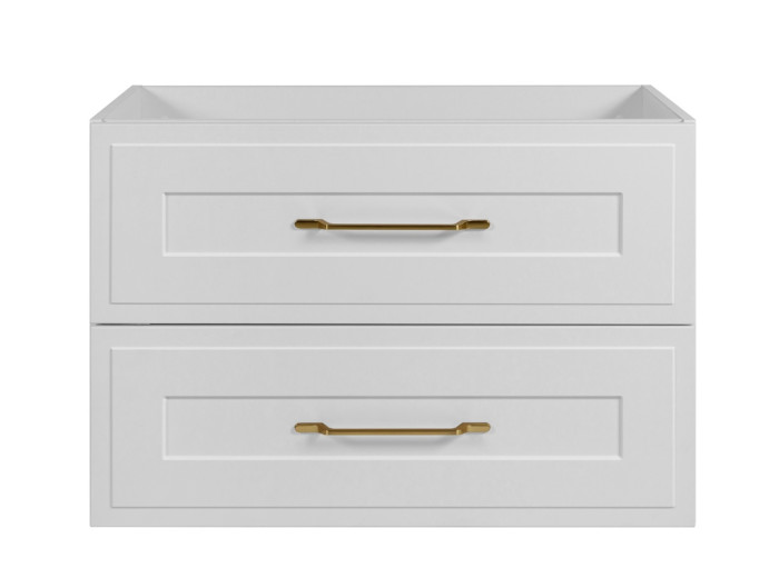Skrinka je závesná na stenu, čo zjednodušuje údržbu podlahy a zároveň dodáva kúpeľni vzdušný vzhľad. Praktické zásuvky sú vybavené funkciou tichého dovierania, vďaka čomu je používanie komfortné a bezhlučné. Farebné prevedenie biela matná pôsobí čisto a univerzálne, pričom vnútorné časti zásuviek v svetlosivej farbe dopĺňajú celkový vzhľad nábytku. Súčasťou balenia sú úchytky v zlatej farbe. Skrinka do kúpeľne ponúka ideálne riešenie na uloženie kozmetiky, čistiacich prostriedkov či drobných doplnkov, ktoré chcete mať vždy po ruke. Ku kúpeľňovej skrinke odporúčame zakúpiť plochý sifón, ktorý umožní plne využiť hornú zásuvku.