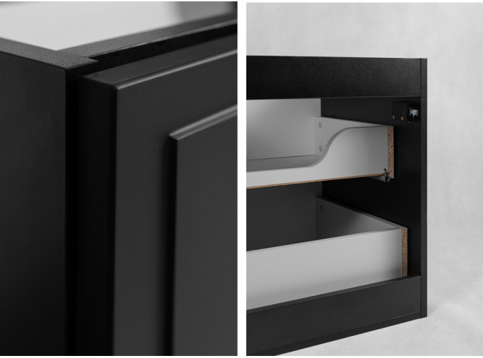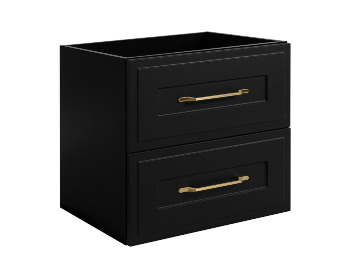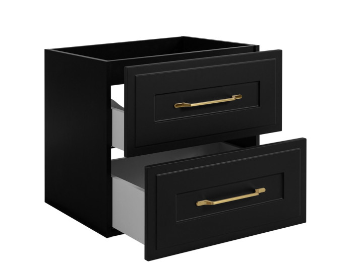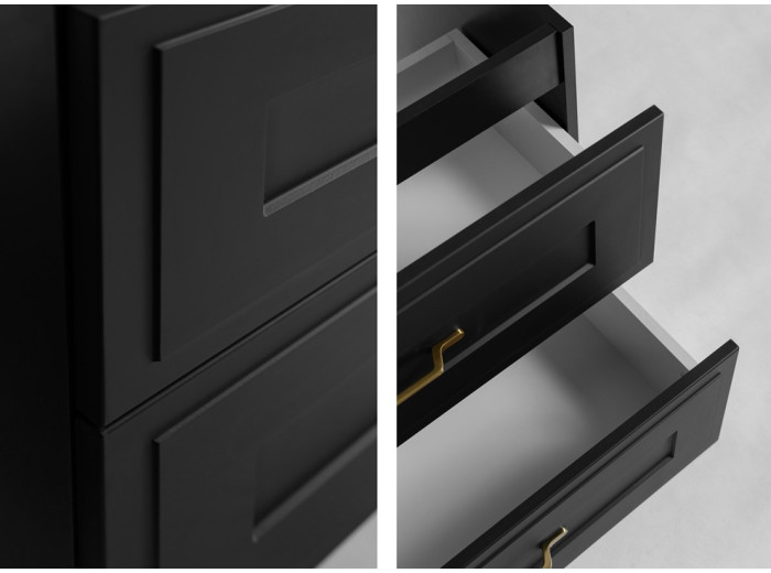 Skrinka pod umývadlo CLASSIC čierny B60 patrí medzi čierne kúpeľňové skrinky v klasickom štýle a je vhodná do menších aj stredne veľkých kúpeľní. Kúpeľňová skrinka v šírke 60 cm je vyrobená z laminovanej drevotriesky s ABS hranami, predné plochy z MDF materiálu sú zdobené frézovaním v tvare rámčeka. Farebné prevedenie je čierna matná, vnútorné časti zásuviek sú v svetlosivej farbe. Skrinka je závesná na stenu, uľahčuje upratovanie podlahy a zároveň pôsobí odľahčene.
