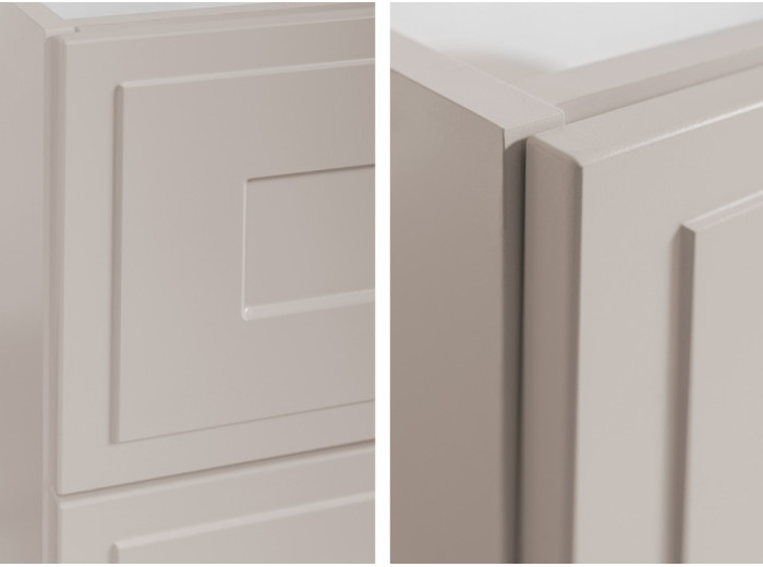 - čelá zásuviek zdobené frézovaným rámčekom,