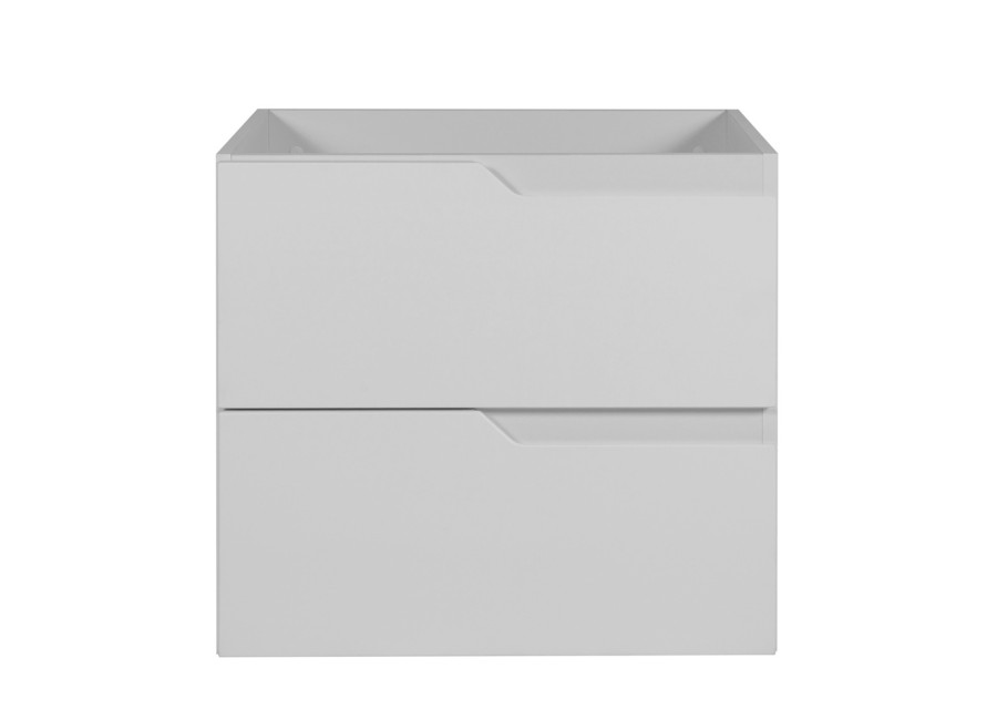 Skrinka pod umývadlo MODERN biely W60 má šírku 60 cm a je vyrobená z laminovanej drevotriesky s ABS hranami, ktoré zvyšujú jej odolnosť voči vlhkosti. Hladké predné plochy z MDF materiálu sú doplnené zafrézovanými úchytkami na pravej strane zásuviek, čo poskytuje moderný a štýlový vzhľad. Celkové farebné prevedenie je biela matná, ktoré ladí s akýmkoľvek interiérovým štýlom, zatiaľ čo vnútorné časti zásuviek sú v kontrastnej svetlosivej farbe.