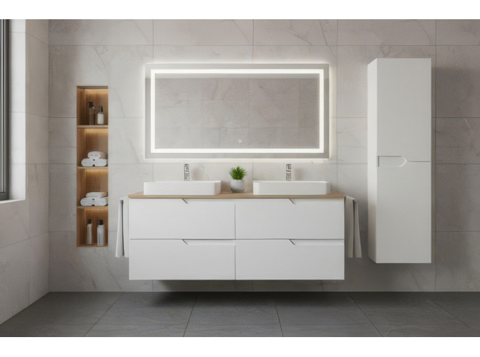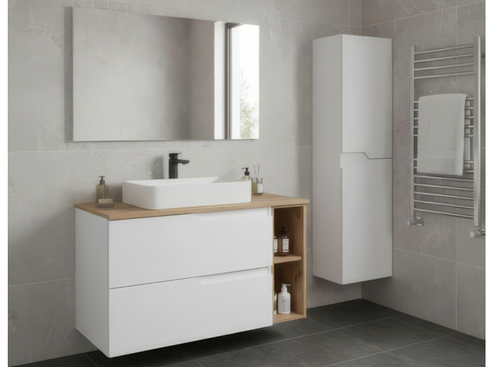 Kolekcia MODERN ponúka širokú škálu kúpeľňového nábytku, vrátane vysokých i ďalších závesných skriniek, čo umožňuje jednotné doladenie celého priestoru.