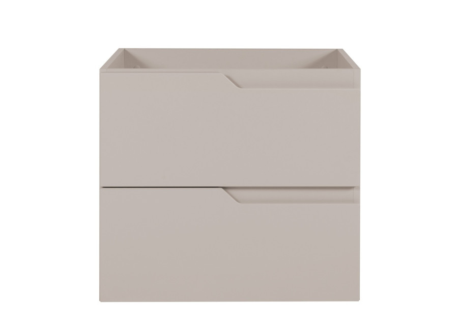 Béžová skrinka pod umývadlo v šírke 60 cm z kolekcie MODERN je riešením pre tých, ktorí hľadajú kúpeľňové skrinky v modernom dizajne a zároveň spoľahlivý nábytok do kúpeľne. Vyrobená je z laminovanej drevotriesky s ABS hranami, pričom hladké predné plochy z MDF materiálu pôsobia čisto a jednoducho. Farebné prevedenie je kašmír a vnútorné časti zásuviek sú v svetlosivej farbe. Skrinka je závesná na stenu, má zafrézované úchytky na pravej strane zásuviek a zásuvky sú vybavené funkciou tichého dovierania, čo zvyšuje komfort pri každodennom používaní.