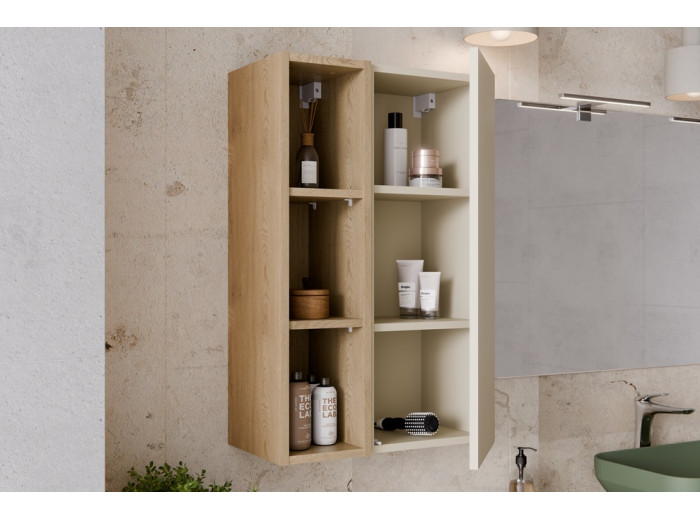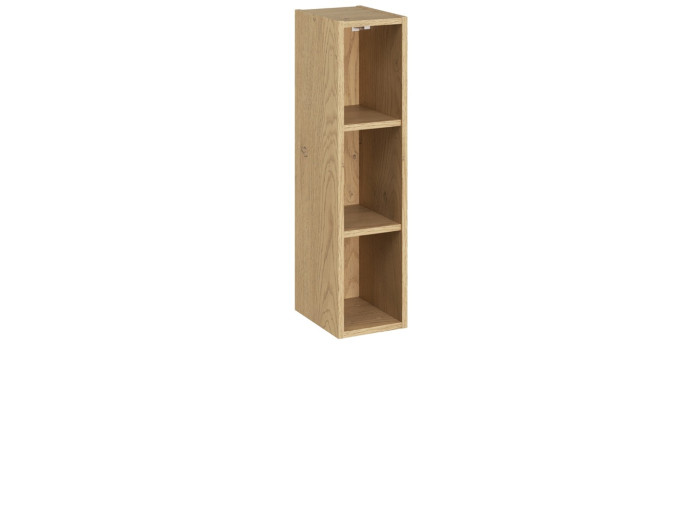 Regál do kúpeľne DALIA je úzky regál so šírkou 20 cm, ktorý je navrhnutý tak, aby doplňal závesné policové skrinky z tejto kolekcie. Je vyrobený z laminovanej drevotriesky s ABS hranami, ktoré zvyšujú odolnosť voči vlhkosti. Farebné prevedenie dub cremona dodáva regálu jemný a elegantný vzhľad. Dve praktické police poskytujú dostatok miesta na uloženie kozmetiky alebo dekoratívnych predmetov, čím pomáhajú udržať kúpeľňu usporiadanú a prehľadnú.