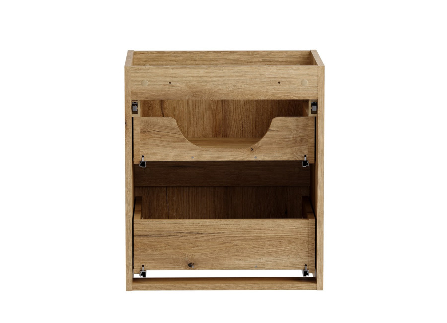 Kúpeľňová skrinka je vyrobená z kvalitnej laminovanej dosky a MDF, čo zvyšuje jej odolnosť voči vlhkosti. Systém tichého dovierania zásuviek výrazne zvyšuje používateľský komfort. Skrinka pod umývadlo je dodávaná v balení určenom na samostatnú montáž. Ku skrinke si môžete zakúpiť zápustné umývadlo v rozmere 50x40 cm alebo vrchné umývadlo s doskou. Pre maximálne využitie priestoru Vám odporúčame zakúpiť plochý sifón.