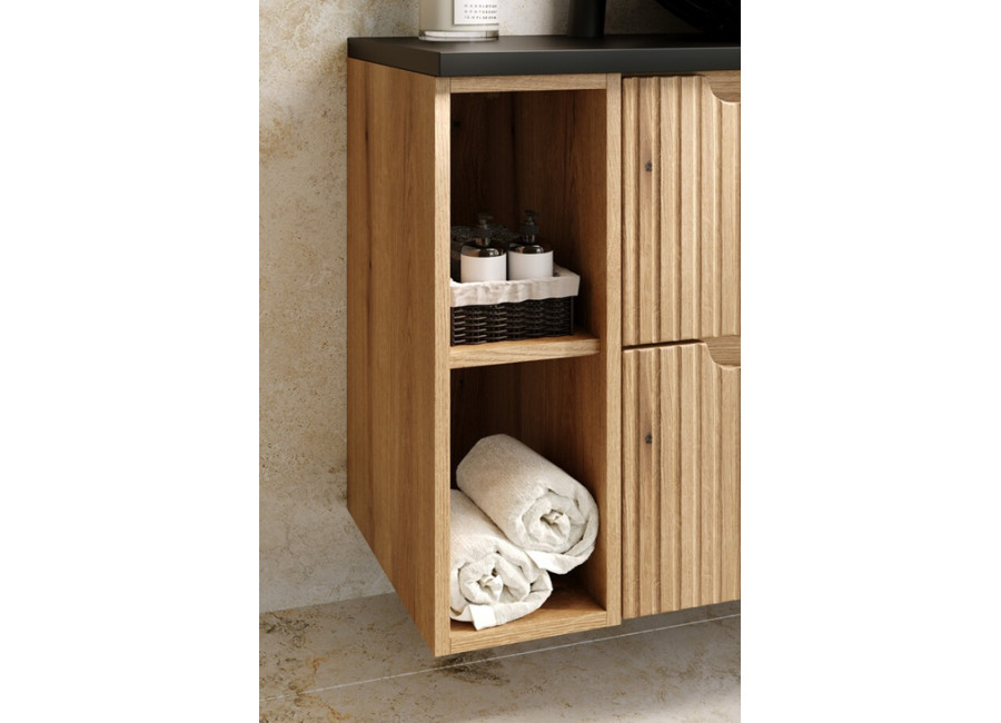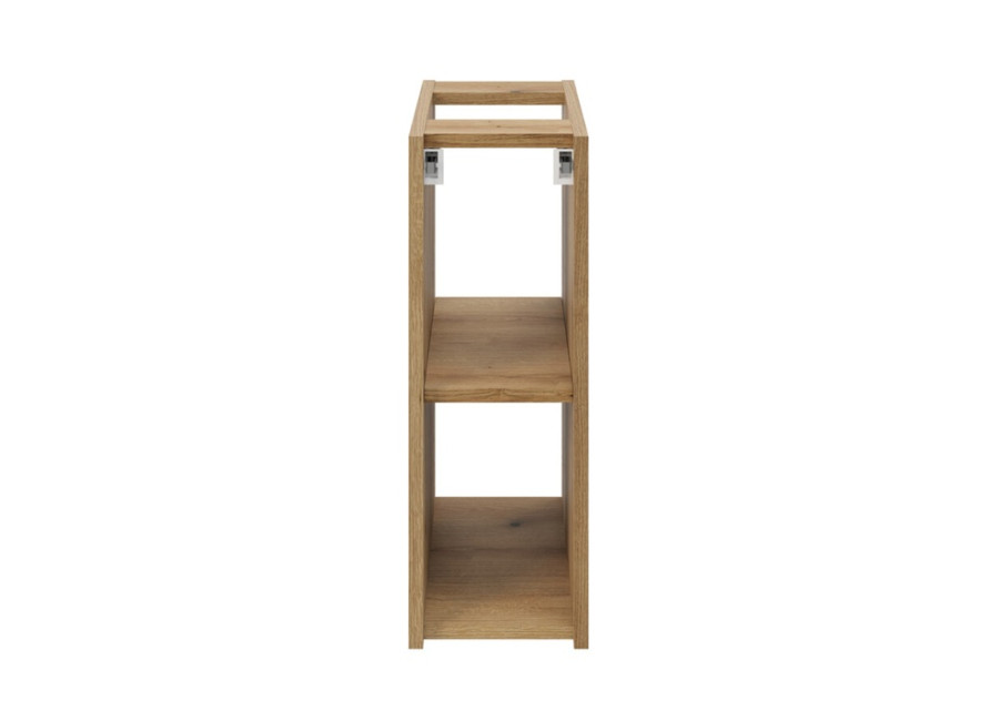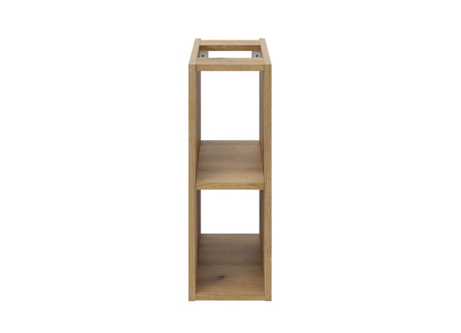 Regál NOVA 81-20-39 je závesná skrinka do kúpelne vo farbe dub evoke. Skrinka neobsahuje vrchnú dosku a je určená ako spojovacia skrinka k umývadlovým skrinkám, čím ponúka flexibilitu a možnosť prispôsobiť si interiér podľa vlastných potrieb a vkusu.