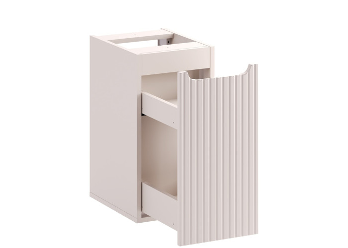 Skrinka s výsuvom NOVA Cashmere 81-30-39-C patrí medzi kúpeľňové skrinky v modernom dizajne. Skrinka do kúpeľne v šírke 30 cm je určená na uloženie malých drobností a môžete ňou rozšíriť napr. skrinky pod umývadlo. Vyrobená je z laminovanej drevotriesky s ABS hranami, predné plochy sú z MDF materiálu. Farebné prevedenie je kašmír, jemný odtieň, ktorý príjemne zjemní celkový vzhľad vašej kúpeľne a ladí prakticky s akoukoľvek kombináciou farieb.