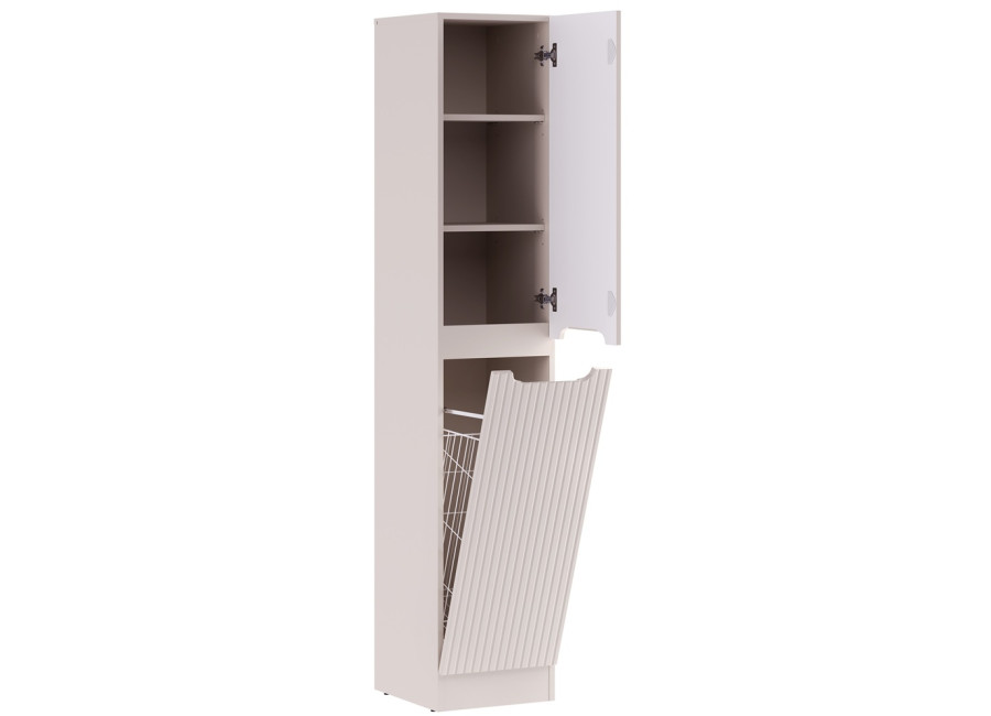 Vysoká skrinka s košom na prádlo NOVA Cashmere 80-35-1D1DK s výškou 180 cm ponúka vnútorné usporiadanie v podobe troch políc a priestranného koša na prádlo. Je navrhnutá pre zákazníkov, ktorí hľadajú funkčný kúpeľňový nábytok s čistým vzhľadom. Elegantný minimalizmus dopĺňa výrazné drážkovanie na dvierkach a zafrézovaná úchytka, ktorá neruší celkovú líniu skrinky. Jemné farebné prevedenie Cashmere pôsobí teplo a prirodzene, vďaka čomu sa skrinka ľahko kombinuje s ostatnými prvkami interiéru. V rámci série NOVA je možné skrinku zladiť aj s ďalšími dekormi a skrinkami.
