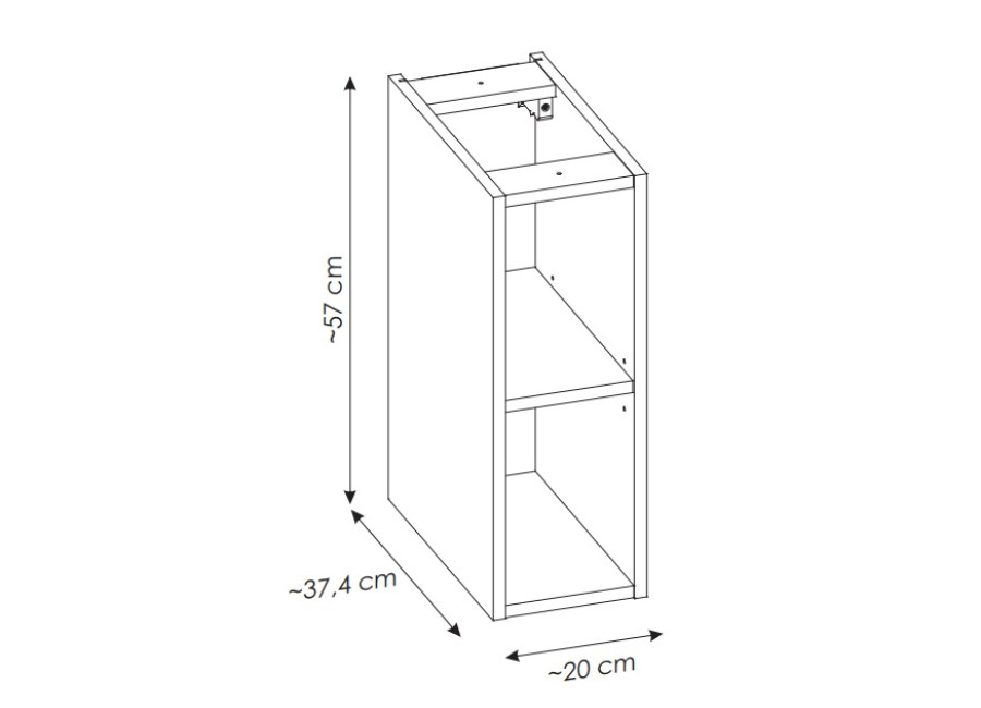 Vnútorný priestor za dvierkami je vhodný na uloženie zásob hygieny, čistiacich prostriedkov, náhradných balení mydla či šampónov, prípadne menších uterákov alebo sušiča vlasov. Otvorený regál v dekore dub evoke poslúži na veci, ktoré chcete mať po ruke a zároveň upratané – napríklad košíky s kozmetikou, papierové vreckovky, parfém alebo dekoratívne doplnky.
