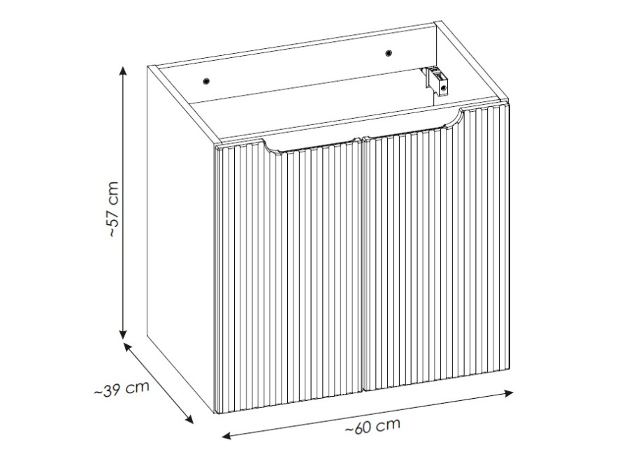 - skrinka je vyrobená z laminovanej drevotriesky s ABS hranami a MDF materiálu odolnému voči vlhkosti,