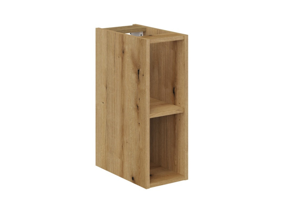 Kúpeľňová skrinka je závesná na stenu, čo uľahčuje údržbu podlahy a opticky odľahčuje priestor kúpeľne. Je vyrobená z laminovanej drevotriesky s ABS hranami, predné plochy sú z MDF materiálu. Farebné prevedenie je biela matná + dub evoke, ktoré sa ľahko kombinuje s ostatným nábytkom do kúpeľne aj s rôznymi typmi obkladov. Zafrézované úchytky nenarúšajú líniu dvierok a prispievajú k jednoduchému dizajnu. Dvierka vybavené funkciou tichého dovierania zvyšujú komfort pri používaní.