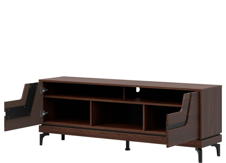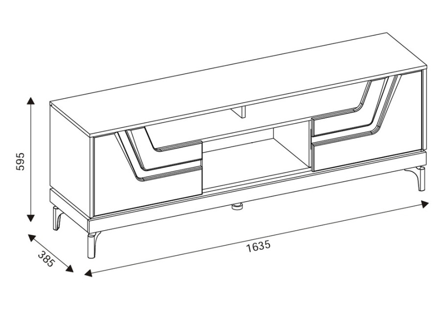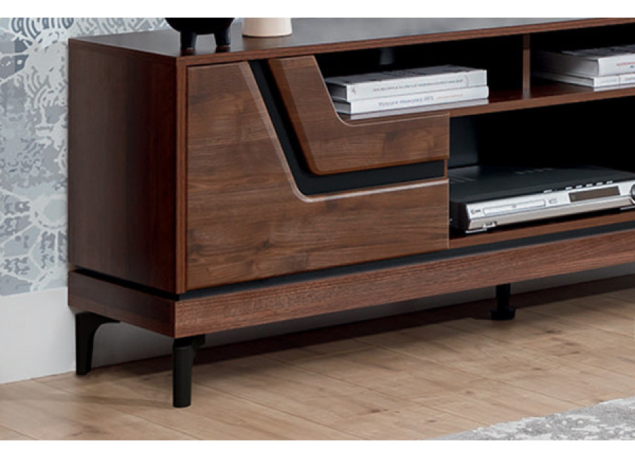Skrinka pod TV VERO VR01 je navrhnutá ako praktický kus nábytku do obývačky, kde poskytne stabilný priestor pre televízor aj súvisiacu techniku. Ide o skrinku pod TV v šírke 163,5 cm, má dvoje dvierka a otvorené police, vďaka čomu je možné prehľadne uložiť set-top box, hernú konzolu, prehrávač alebo dekorácie. Uzatvorené časti sú vhodné na uloženie káblov, ovládačov, manuálov či iných drobností.