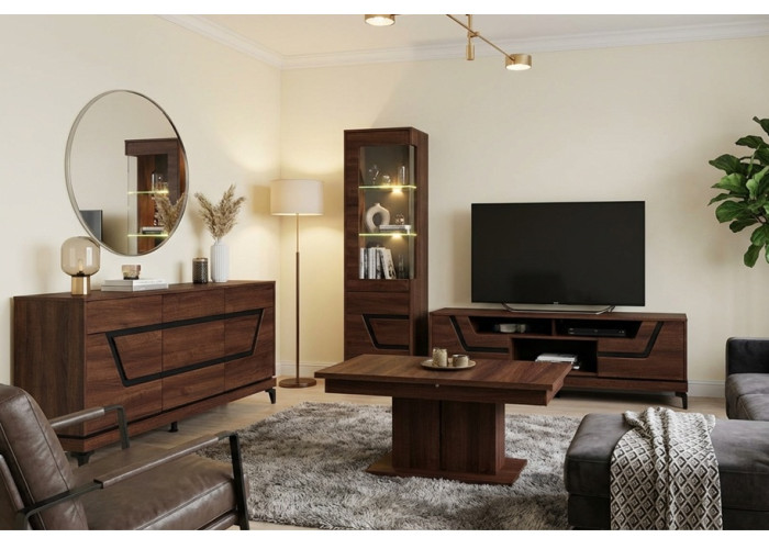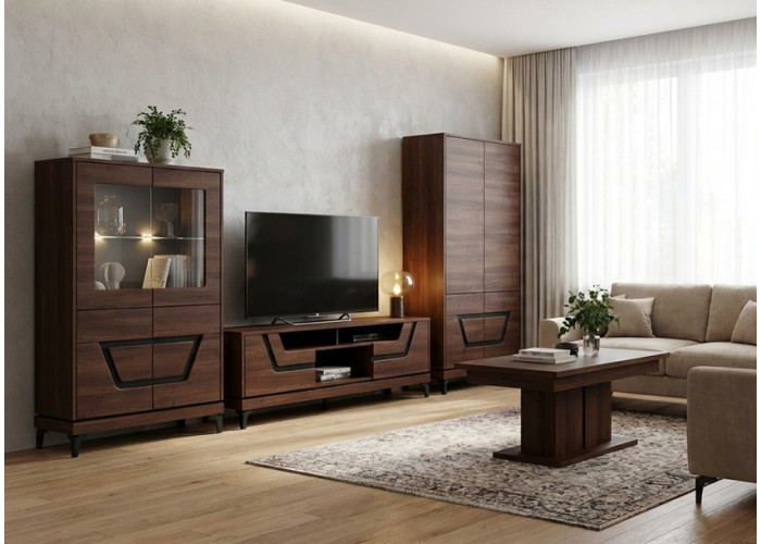 Obývacia stena VERO sa skladá z rôznych prvkov: stolíky pod TV, komody, vitríny, skrine aj konf. stolík a polica, vďaka čomu je možné vytvoriť ucelený a prehľadný obývací priestor podľa individuálnych potrieb. Jednotlivé kusy na seba nadväzujú rozmerovo aj dizajnovo a umožňujú flexibilné riešenie úložného priestoru bez narušenia celkového vzhľadu miestnosti.