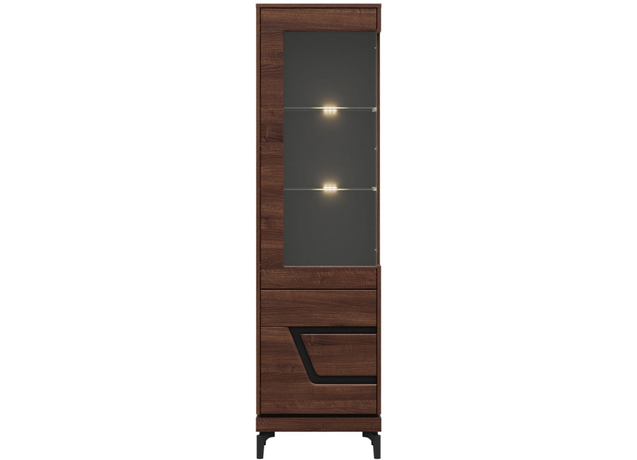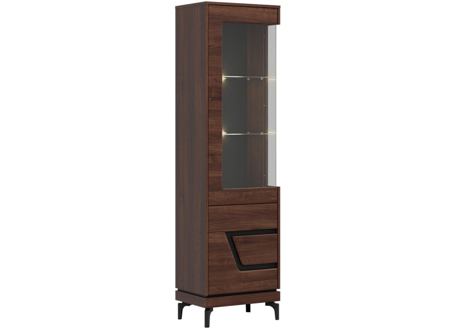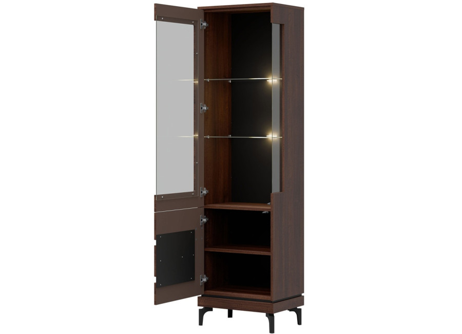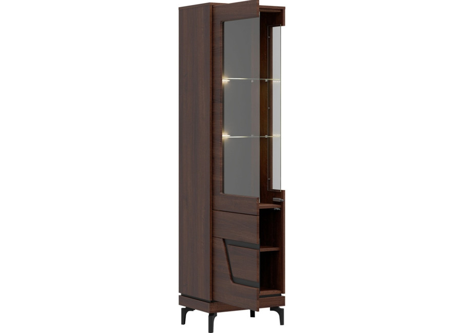 Vitrína VERO VR04 je úzkym a praktickým riešením, vhodným najmä do menších priestorov alebo ako súčasť väčšej zostavy v rámci obývacej steny. Ide o vitrínu v šírke 54,5 cm. Má dvoje dvierka, z toho vrchné sú presklené.