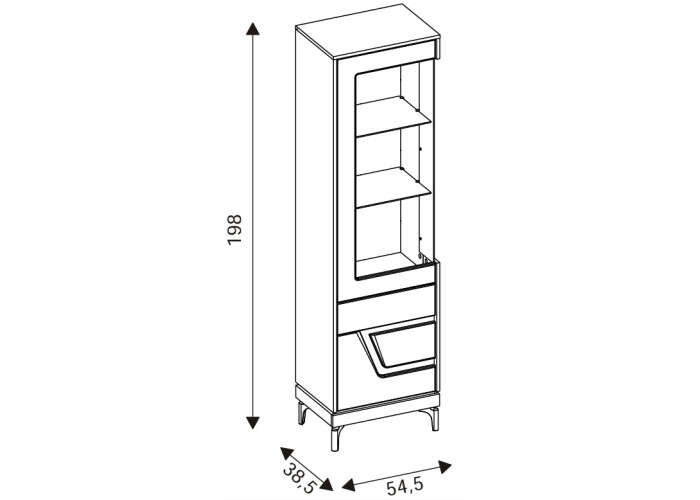 Vitrína VERO VR04 je úzkym a praktickým riešením, vhodným najmä do menších priestorov alebo ako súčasť väčšej zostavy v rámci obývacej steny. Ide o vitrínu v šírke 54,5 cm. Má dvoje dvierka, z toho vrchné sú presklené.