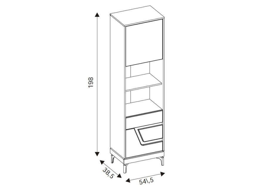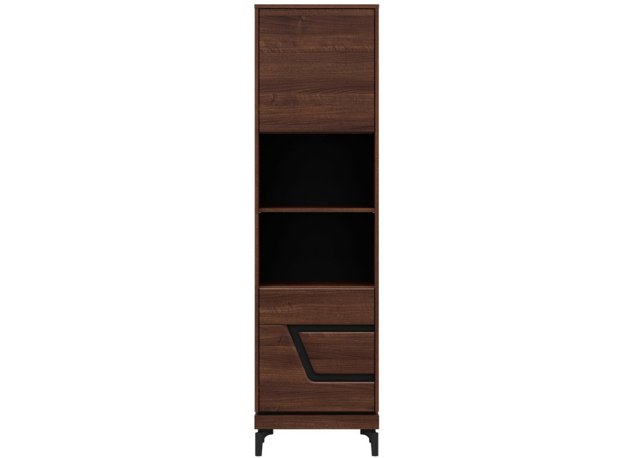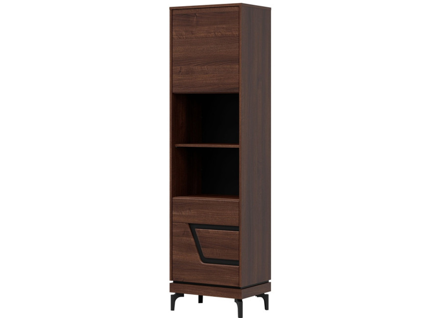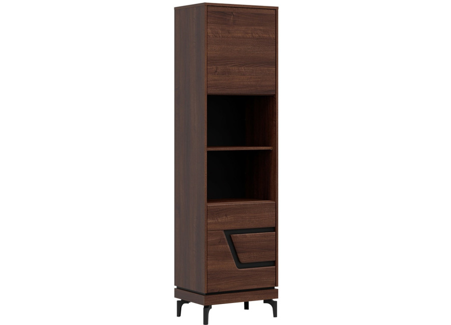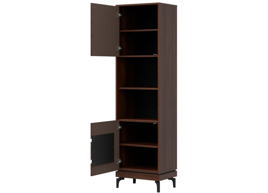 Policová skriňa VERO VR07 je úzkym a praktickým doplnkom obývacej steny. Ide o policovú skriňu alebo regál v šírke 54,5 cm. Má dvoje dvierka, za ktorými sa nachádza prehľadný úložný priestor využiteľný na rôzne predmety každodennej potreby.